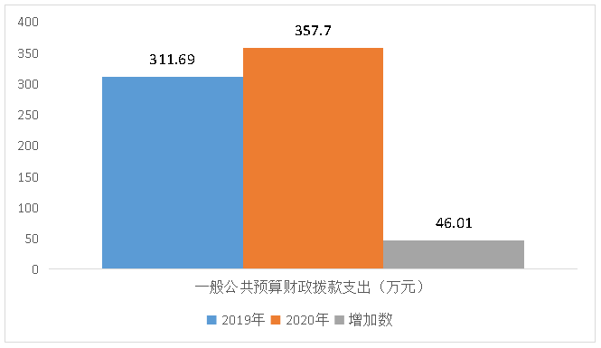 2020年一般公共预算财政拨款支出357.7万元,占本年支出合计的100%。与2019年相比,一般公共预算财政拨款支出增加46.01万元,增长14.76%。主要原因是业务量增加,人员增加导致基本支出增加。
