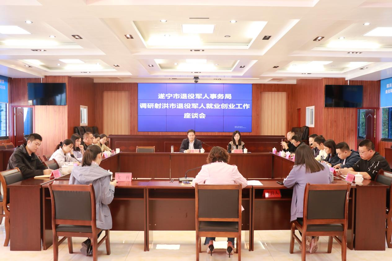 11月6日,遂宁市退役军人事务局党组成员、副局长杜昭明调研射洪退役军人就业创业工作情况,射洪市退役军人事务局党组书记、局长李琪,副局长文莉参加调研。