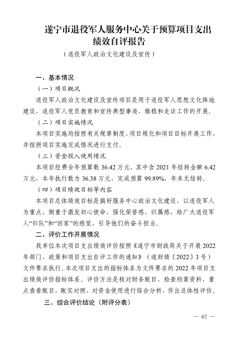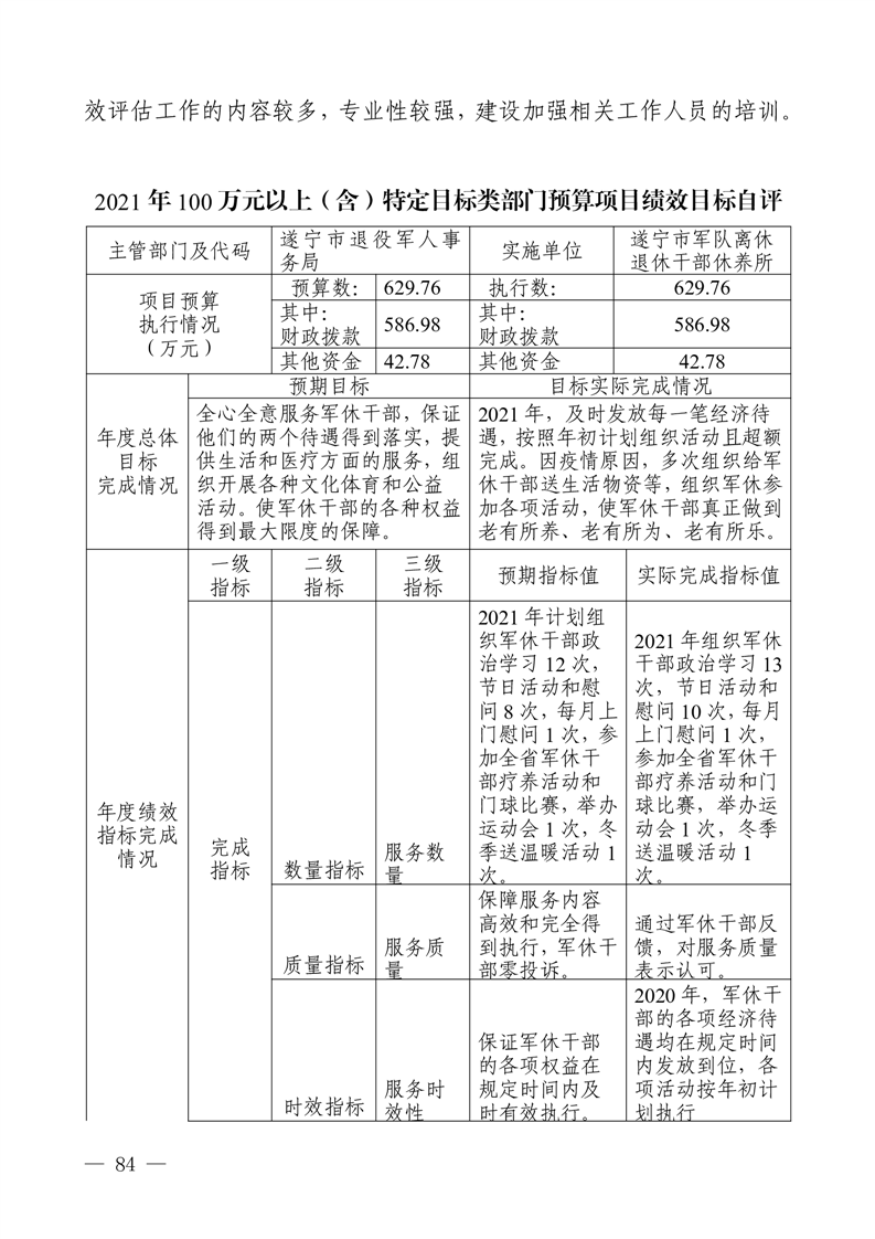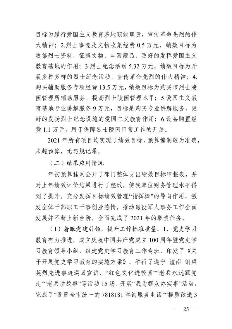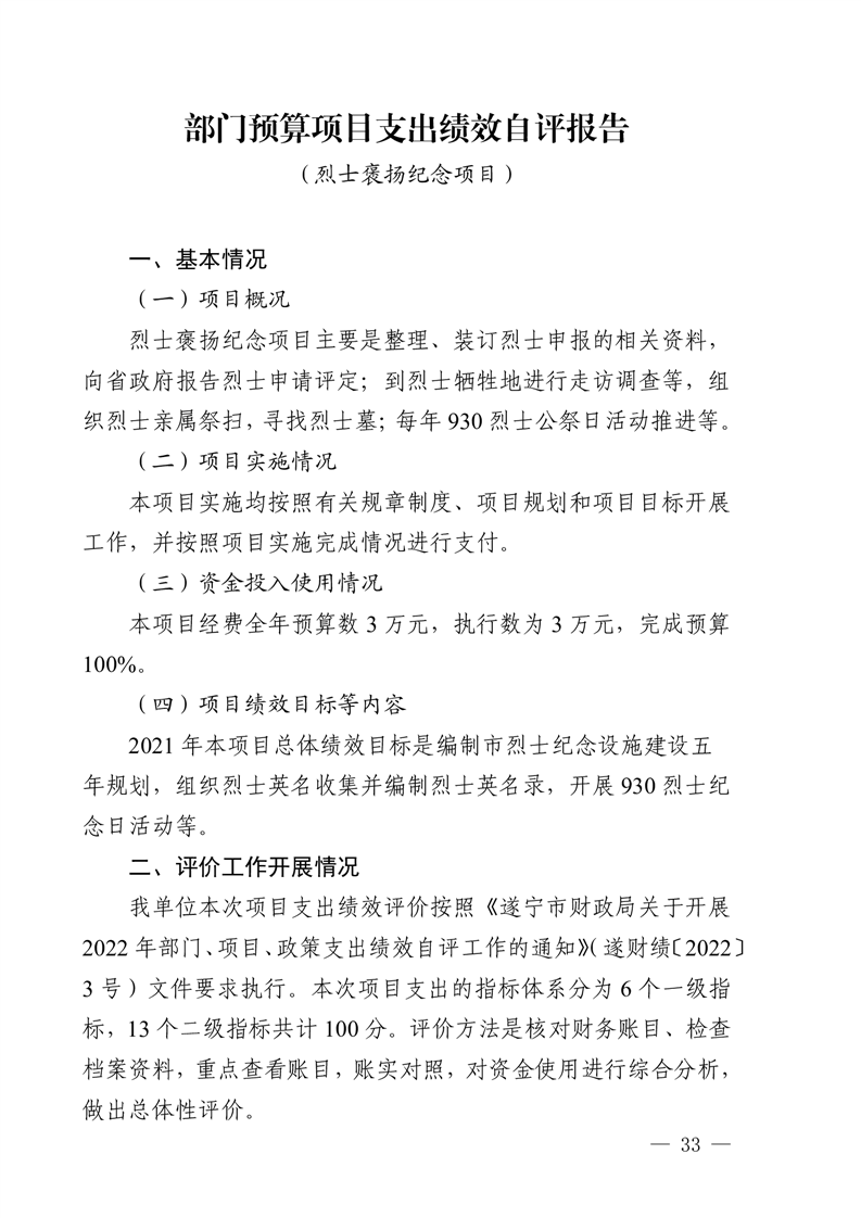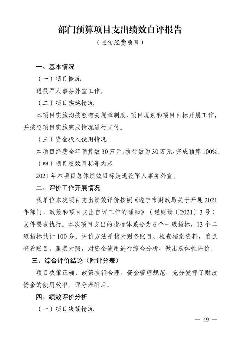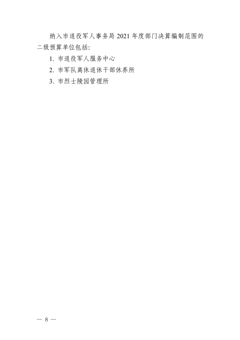 2021年度四川省遂宁市退役军人事 务局(汇总)单位决算