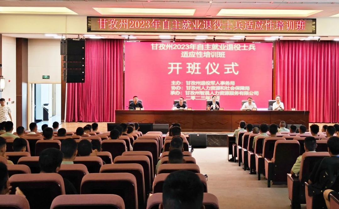 9月19日,甘孜州2023年度自主就业退役士兵适应性培训开班仪式在甘孜州职业技术学校举行,州局党组书记、局长丁淑娟出席开班仪式作动员讲话,她强调退役军人通过此次培训,能够熟悉就业创业相关政策,了解当前形势,提高自身技能水平,树立正确的择业观,完成从建设国防到建设家乡的重要转变。并向参训学员提出三点希望:一是高度重视,充分认识此次培训的重要性;二是转变角色,珍惜培训机会;三是严守纪律,树立良好形象。