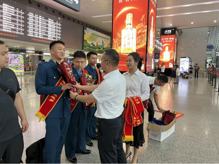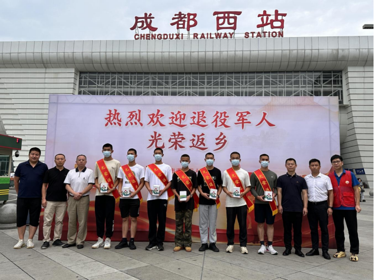 成都青羊区在成都西站设置接待站,为返乡退役军人提供政策咨询、协助中转换乘等服务