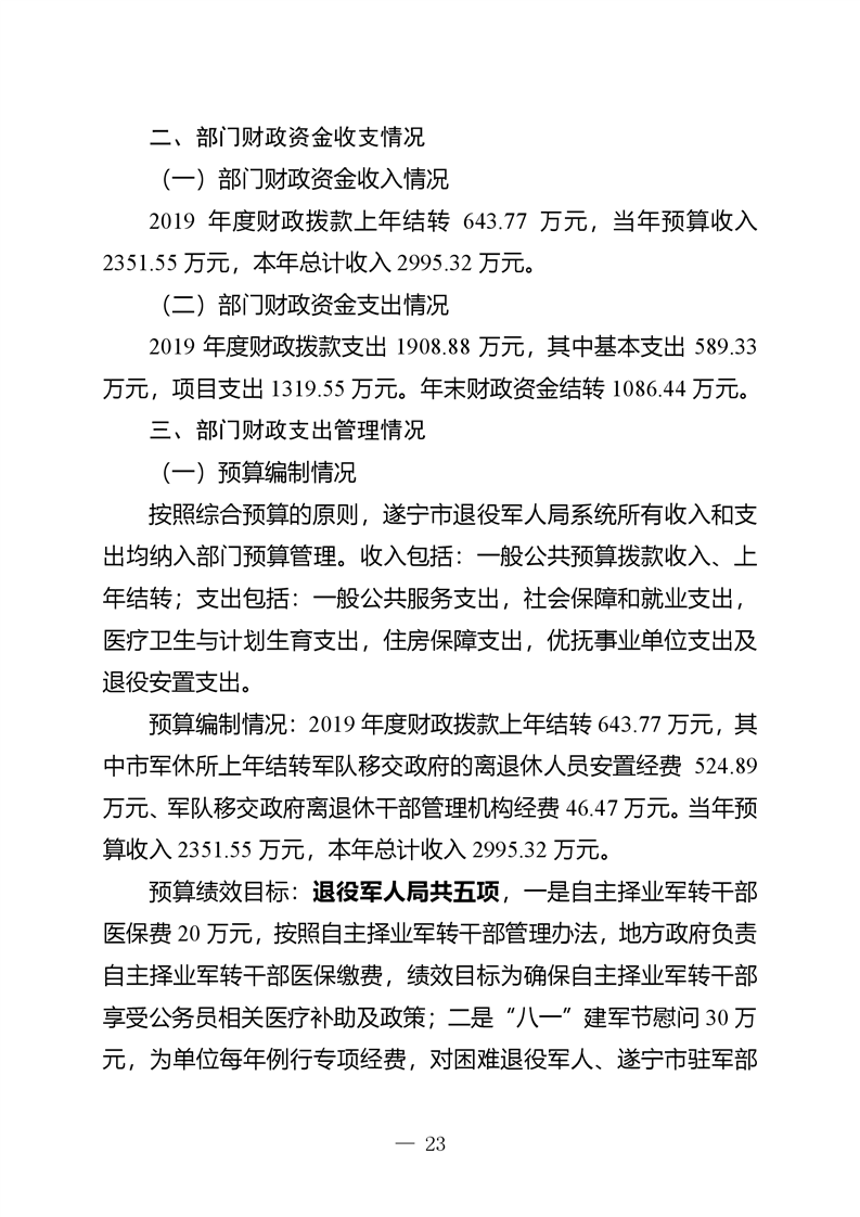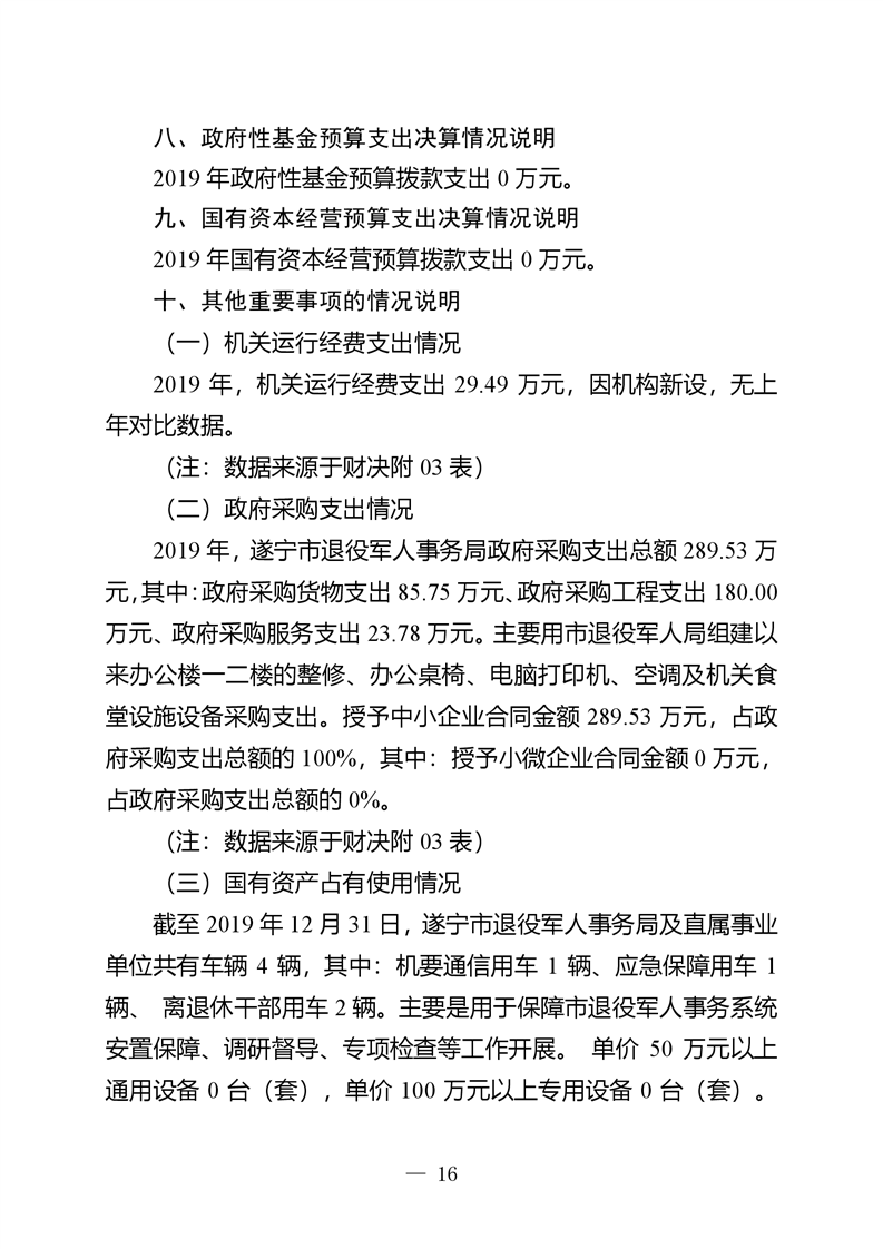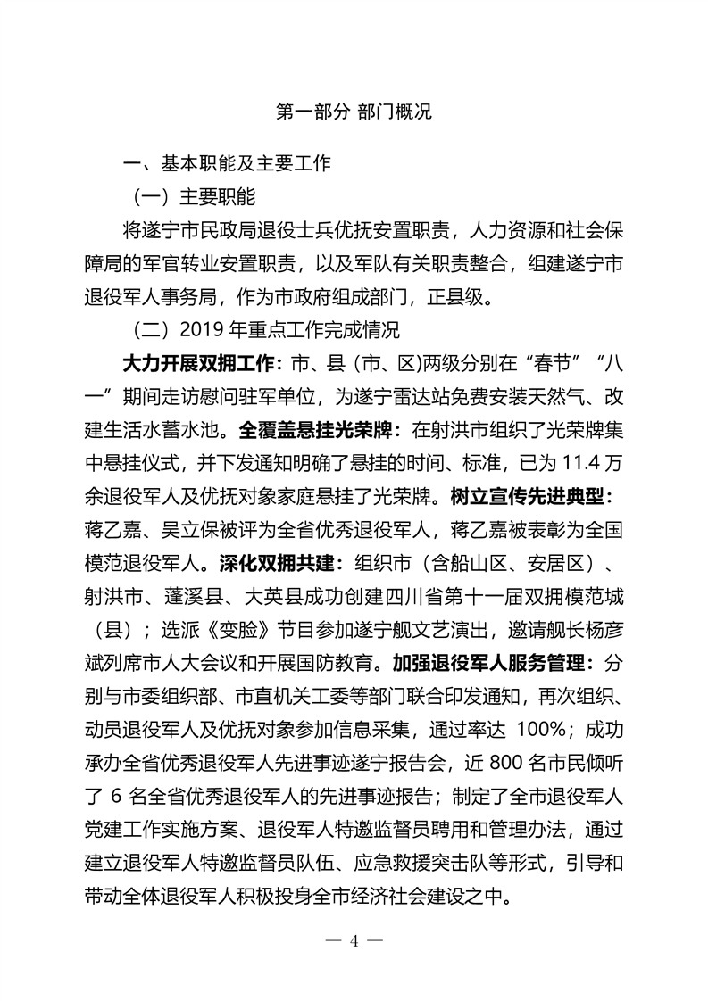 2019年度四川省遂宁市退役军人事务局汇总部门决算