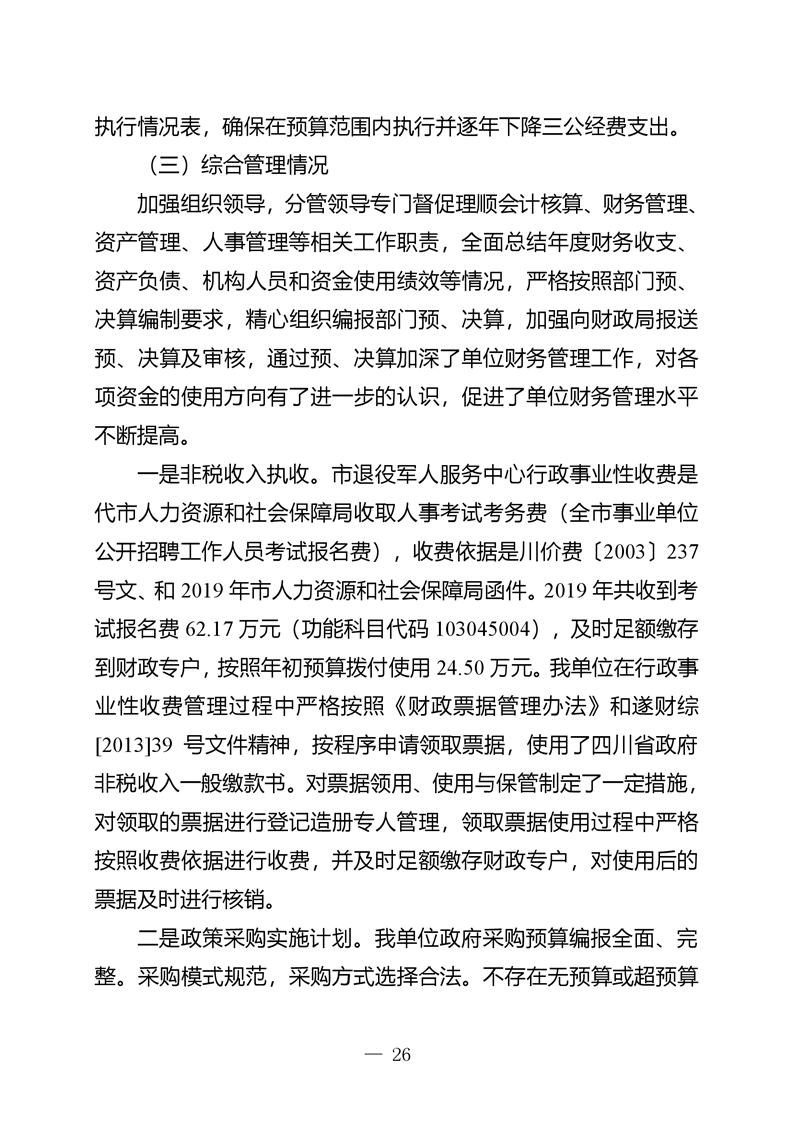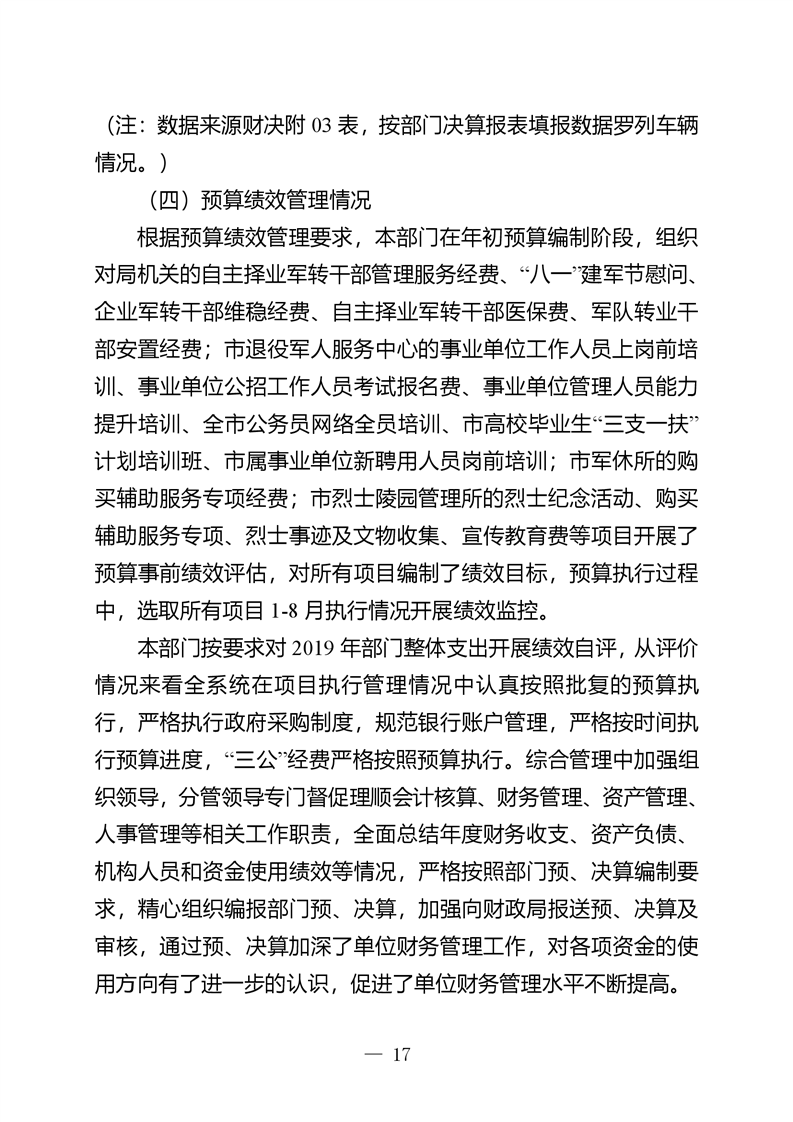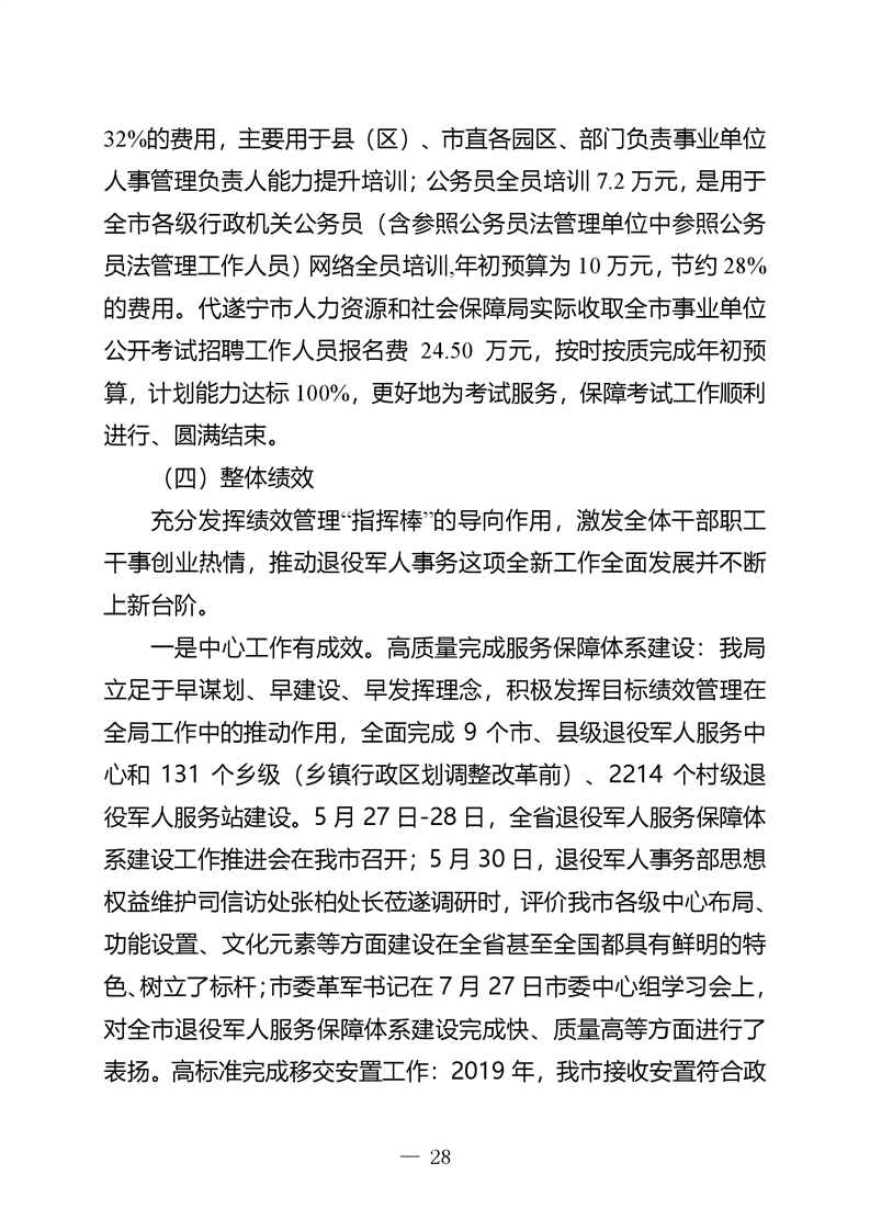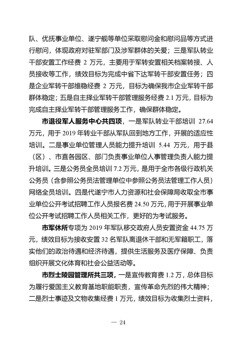 2019年度四川省遂宁市退役军人事务局汇总部门决算