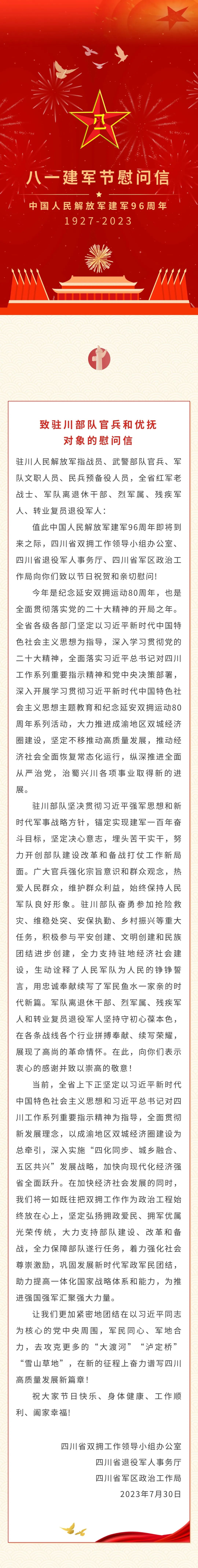 致驻川部队官兵和优抚对象的慰问信
