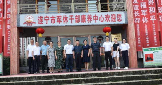 7月20日,四川省退役军人事务厅移交安置处处长陶明明、副处长唐琳、一级调研员魏中越一行在遂宁市退役军人事务局党组书记、局长肖舰,党组成员、副局长梁腾飞等领导陪同下到遂宁市军休干部康养中心调研指导工作。