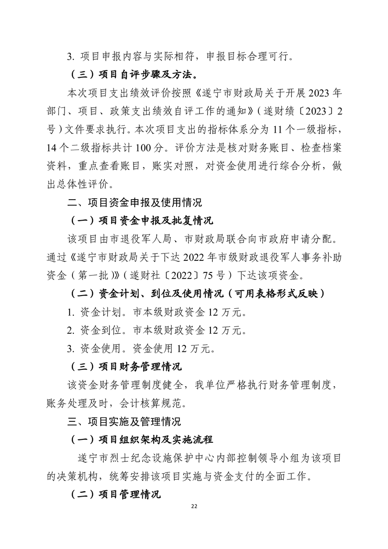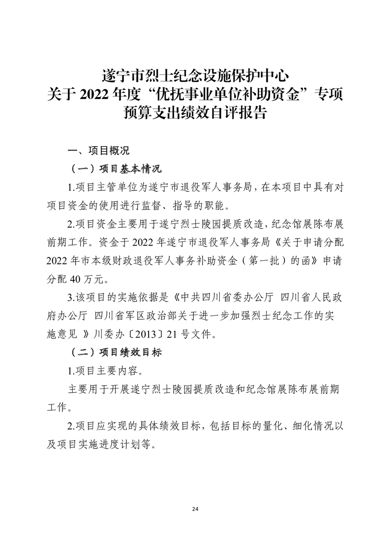 2022年遂宁市烈士纪念设施保护中心(遂宁市烈士陵园管理所)决算编制说明